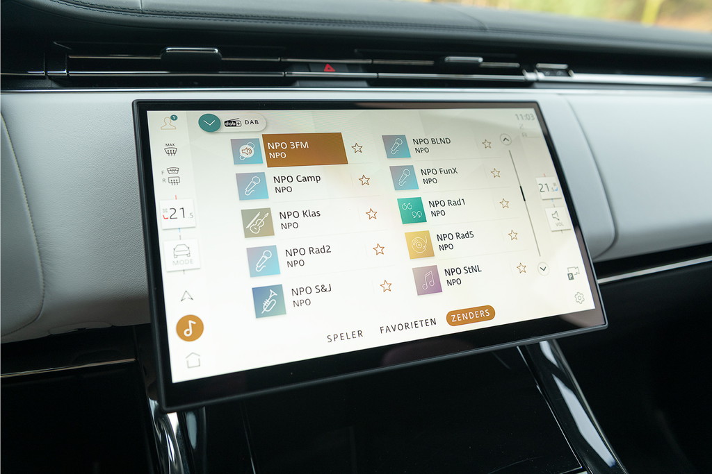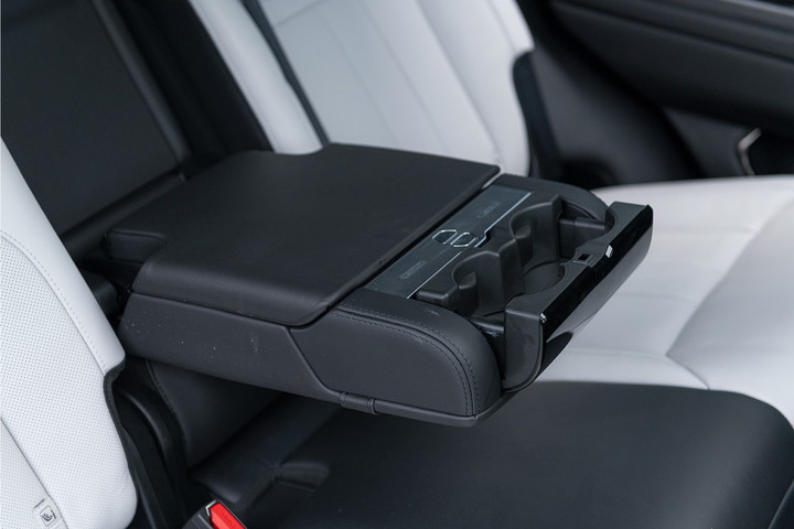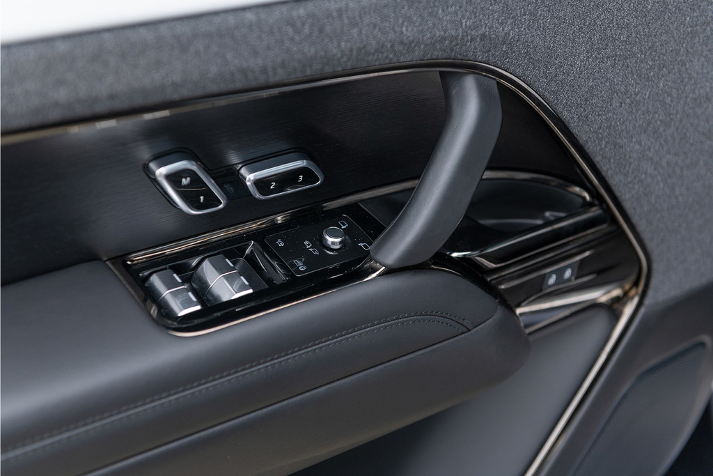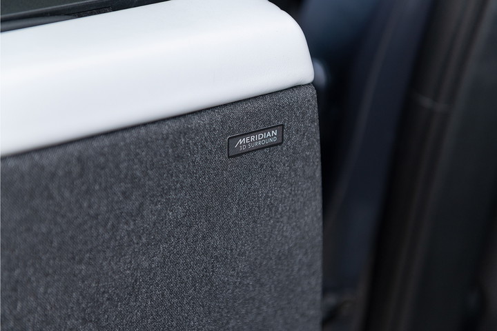 Achterin biedt de elektrische achterbank extra gemak en luxe voor passagiers. Met het Meridian-soundsysteem dat kraakhelder en vol klinkt, wordt elke rit een premium ervaring.